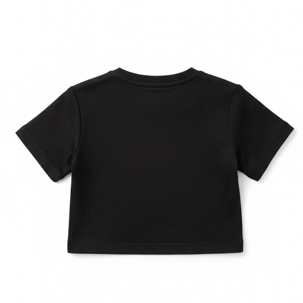 The cropped fit adds a modern silhouette, while the soft, breathable fabric ensures all-day comfort. Whether it’s a casual outing or a fun day out, this tee delivers style with ease.