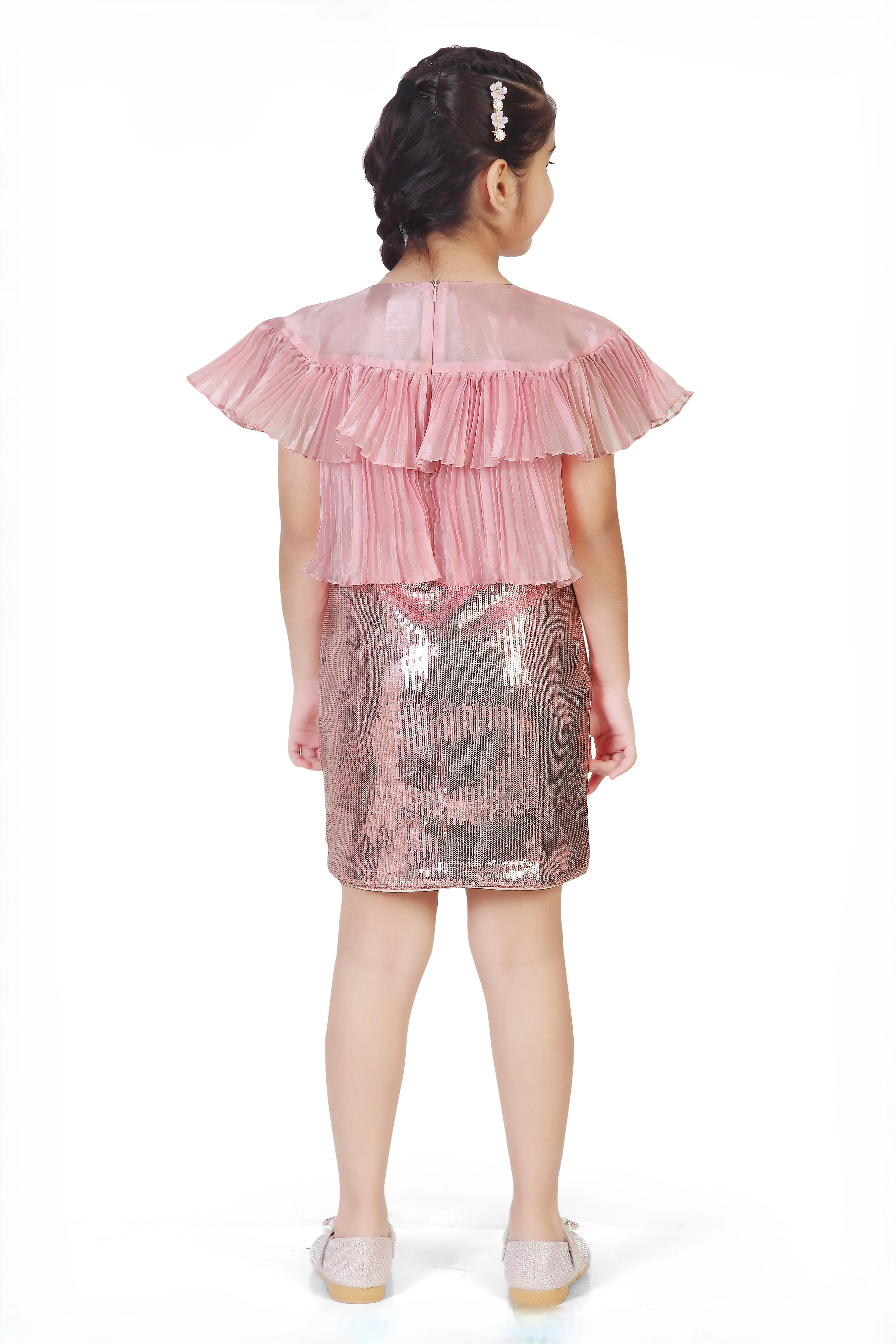 Elevate your daughter's festive wardrobe with this stunning pink sequin ensemble. The coordinated skirt and top combination features eye-catching sequin detailing that catches light beautifully, making it perfect for celebrations, parties, and special occasions. The thoughtfully designed set ensures a polished, put-together look without requiring additional styling. Quality construction and comfortable fit allow her to move freely while looking absolutely radiant. An ideal choice for creating memorable moments at weddings, birthday parties, and holiday gatherings.