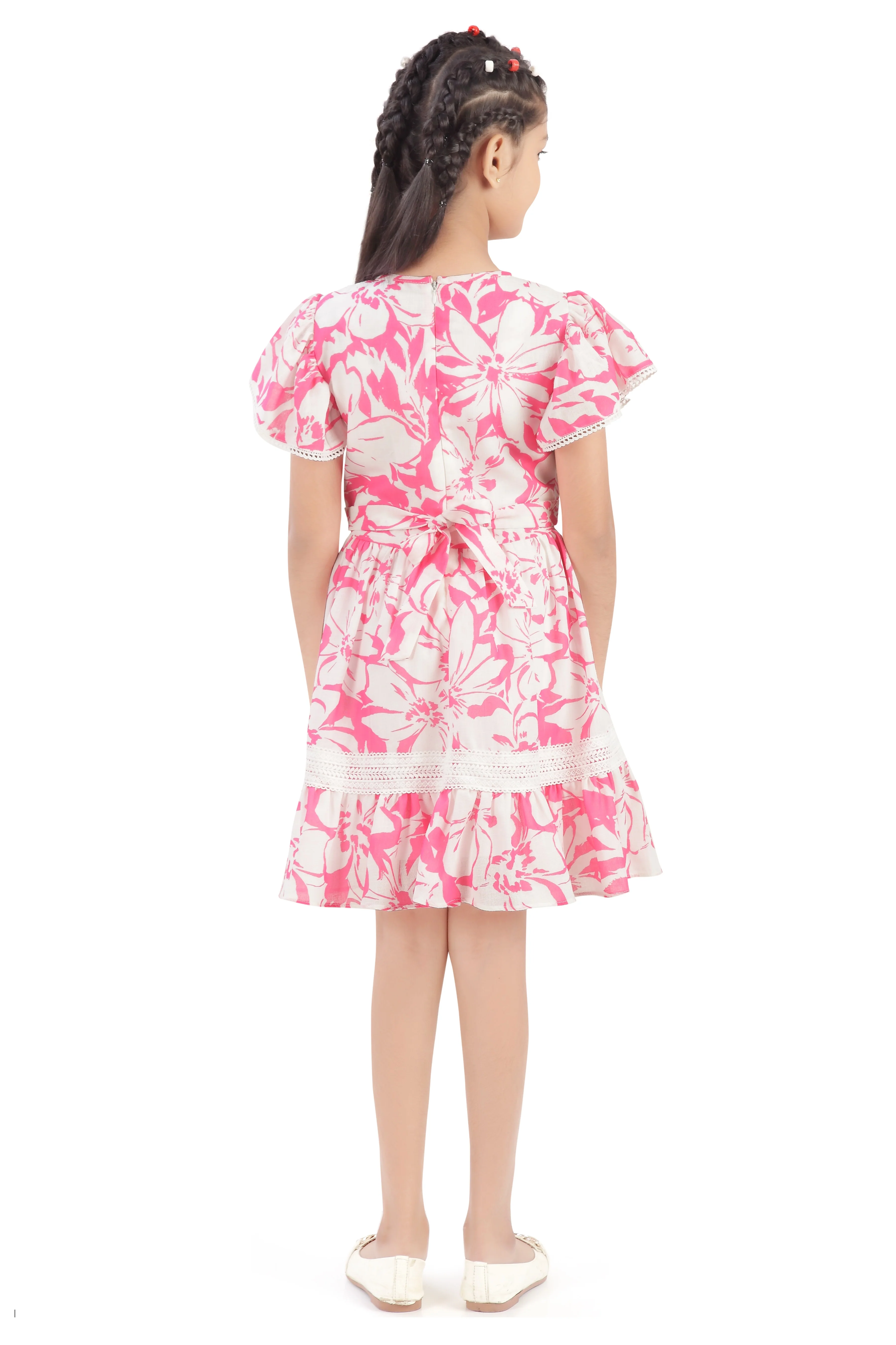 Elevate your daughter's wardrobe with this charming pink floral dress, designed to combine style with comfort. The delicate floral print brings a cheerful, feminine touch, while the signature puff sleeves add a contemporary flair that's both playful and sophisticated. Crafted with quality fabrics in mind, this dress offers ease of movement for active play and everyday wear. Perfect for casual outings, celebrations, or special occasions, it's a versatile piece that transitions seamlessly from season to season. An essential addition to any young girl's collection.